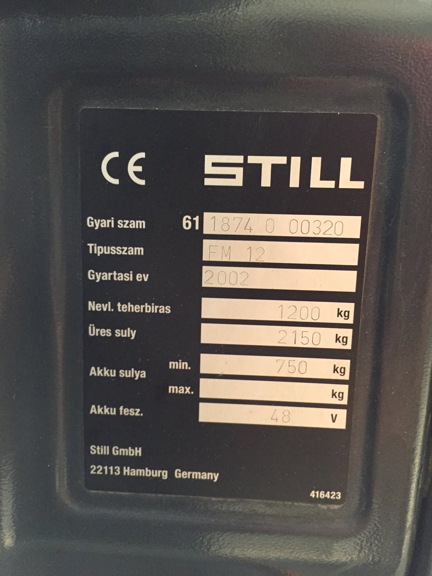 Termékjellemzők: Évjárat: 2002 Üzemóra: 5703 Oszlop: 5600 mm-es emelési magassággal Teherbírás: 1200 kg Állapot: Rendszeresen karbantartott, kifogástalan működéssel